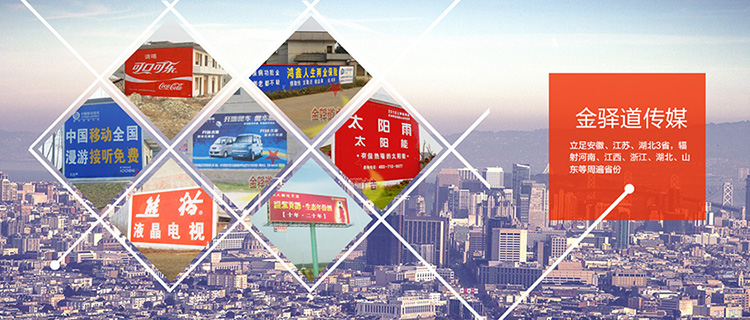 合肥金驛道廣告有限公司作為安徽省專營全國墻體廣告制作發布業務的一線品牌傳播公司---,10多年的運作經驗沉淀和積累及優化管理,不斷創新超越自我、發展壯大!目前組織管理幾十支訓練有素、經驗豐富的專業墻體廣告施工隊伍,秉承高品質服務、規?;陌l展宗旨,立足安徽、江蘇、湖北3省,輻射河南、江西、浙江、湖北、山東等周遍省份,主要負責安徽墻體廣告,合肥墻體廣告,安徽墻體廣告,墻體噴繪等具備多省份同時大規模運作墻體廣告業...